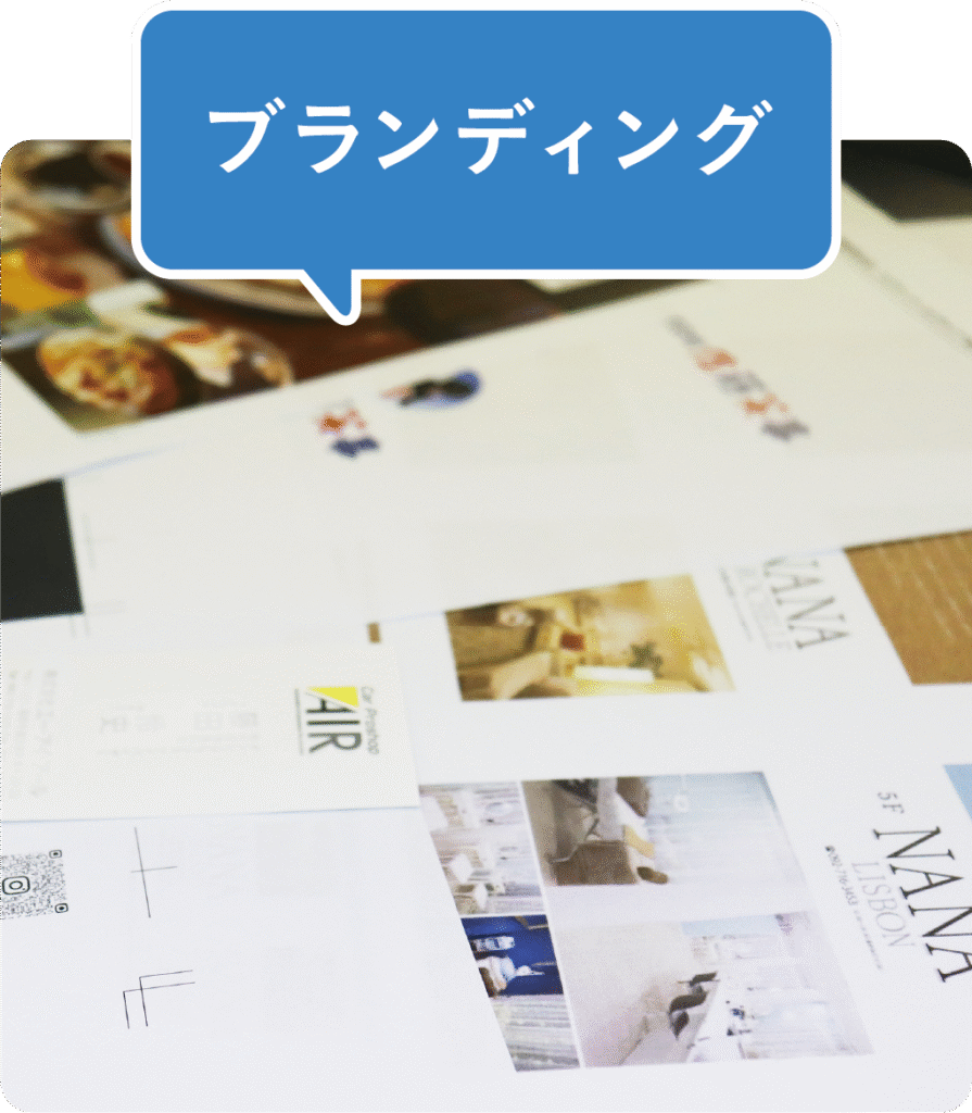 ロゴデザインをはじめ、名刺・封筒・DMなどのCI・VI計画、内装イメージデザイン、看板・パネルといったPRツールまで、ブランドコンセプトを視覚的に表現します。